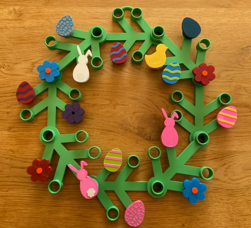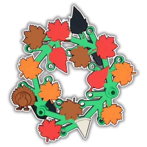 Websites like Thingiverse, Printables, and Makerworld are a treasure trove of designs, and the LEGO‑style wreath is one of its gems. First, you will need to download a basic models, which can be found at https://www.thingiverse.com/thing:4676031. The model includes large 3D printed branches (220mm x 136mm) and oversized lego-shaped studs. The branches connect end‑to‑end, just like regular LEGO pieces, to create a full-sized wreath with six connection spots per branch.
